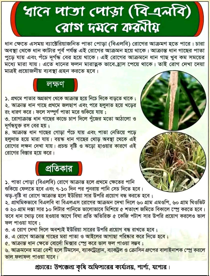 ধানের পাতা পোড়া (বিএলবি) রোগ দমনে করনীয়